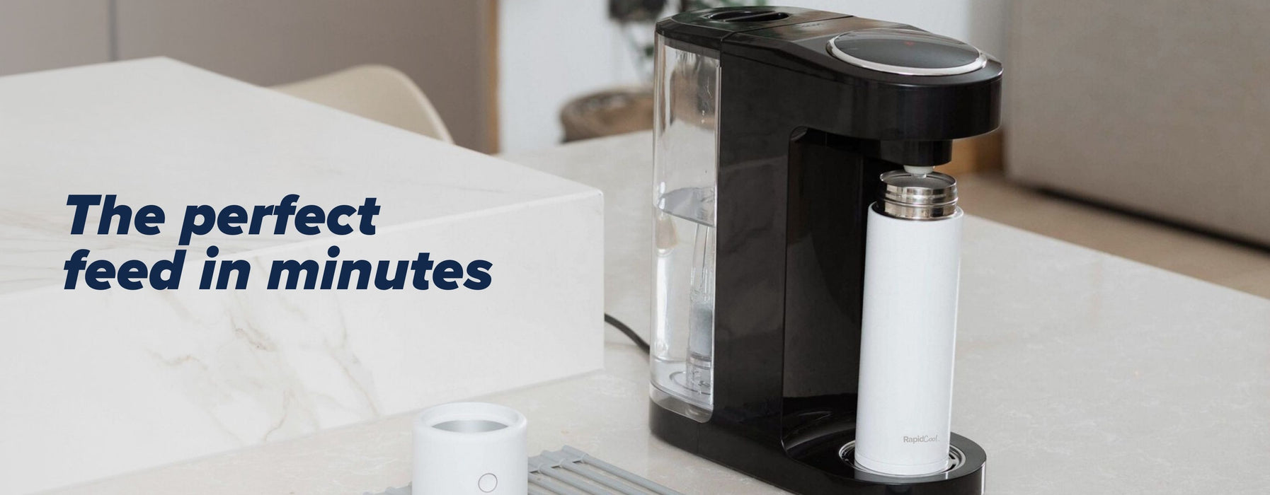 Our baby bottle maker machine is the handiest milk maker that delivers instant, filtered, boiling water at the touch of a button¹. Just slide in your RapidCool, select your feed size, then add your infant formula to make the perfect feed to NHS guidelines. It’s really that simple. Milk to mouth in just 2 minutes². And for those extra sleepy night-feeds… RapidHot will memorise your last feed settings, so you have one less thing to think about. RapidHot - the parenting assistant you’ve been waiting for.