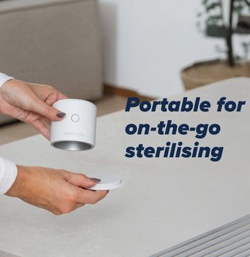 The RapidSterilise isn’t just about speed, it’s about peace of mind. With its hassle-free operation and compact design, you can sterilise your RapidCool anytime, anywhere, without the need for water or harsh chemicals. Whether it’s a late-night feed or a day out with your baby, you’ll have one less thing to worry about. Just press, sterilise, and you’re good to go.