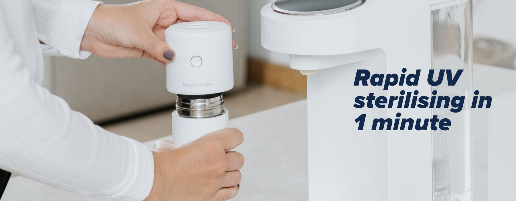 Sterilising your RapidCool just got a whole lot easier. Whether you're on the go or at home, your RapidCool sidekick is ready to banish the bacteria in just one minute so you’re ready to make the next feed. The small and mighty baby bottle maker steriliser makes feeding time safe, quicker and a lot less stressful, just the press of a button and – zap – UV light gives you rapid sterilisation.